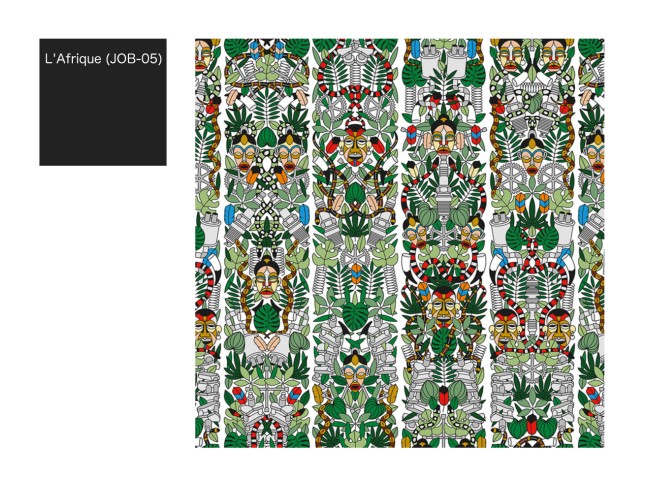 The collection includes seven designs: Industry, Labyrinth, Perished, Alt Deutsch, L’Afrique and Withered Flowers, which is available in both monochrome or colour. Made from a non-woven paper with a matte finish, each roll is nine metres by 48.7 centimetres.