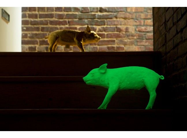 A bank in the form of a pig.