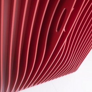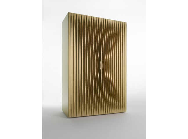 Karim Rashid's Blend wardrobe features doors with evenly-spaced think sheets of MDF, which together create a sculptural, dynamic effect.