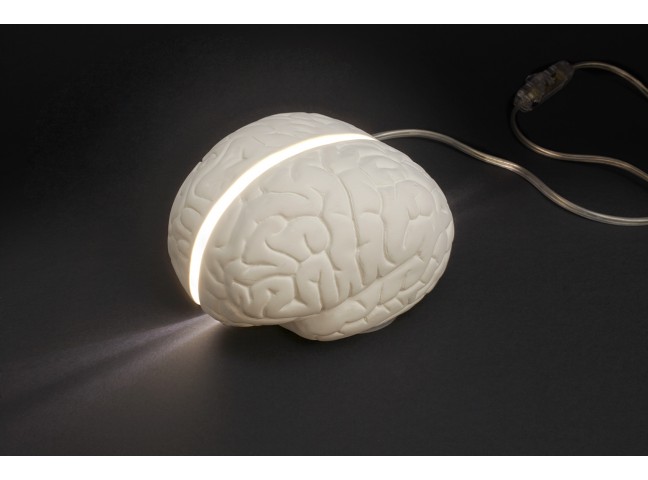Inspired by the power of the mind, Brainstorm's LED light shines from within a ceramic brain, cutting a line through the hemispheres. The result is an illuminated white table lamp that adds a quirky sense of fine design to your home.