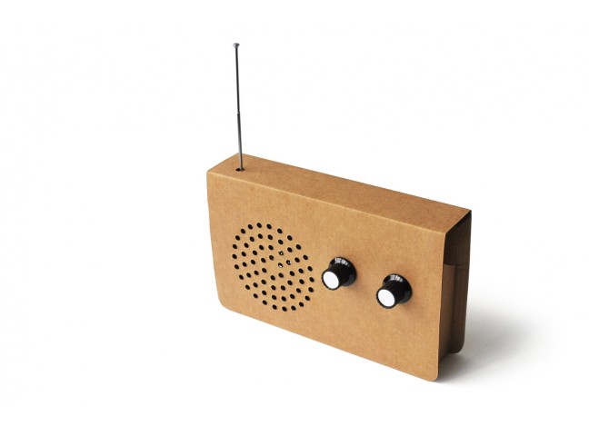 Cardboard Radio is a classically designed FM radio and MP3 speaker - made out of cardboard! Plug in your phone or ipod for loud music with amazing sound quality. Take it to the beach or picnic, anywhere you'd like to hear your music. Doubles as an FM radio.