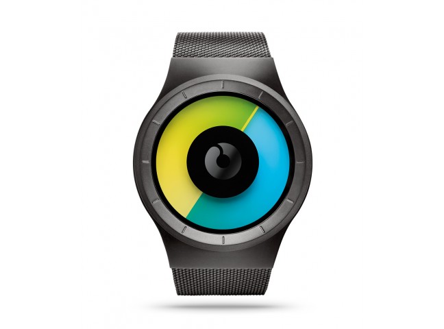 Celeste Watch tells the time with color and form. The watch face consists of two transparent coloured discs that represent the watch hands. When overlapped, they create a small spectrum of shades and colors, that let you know the time.