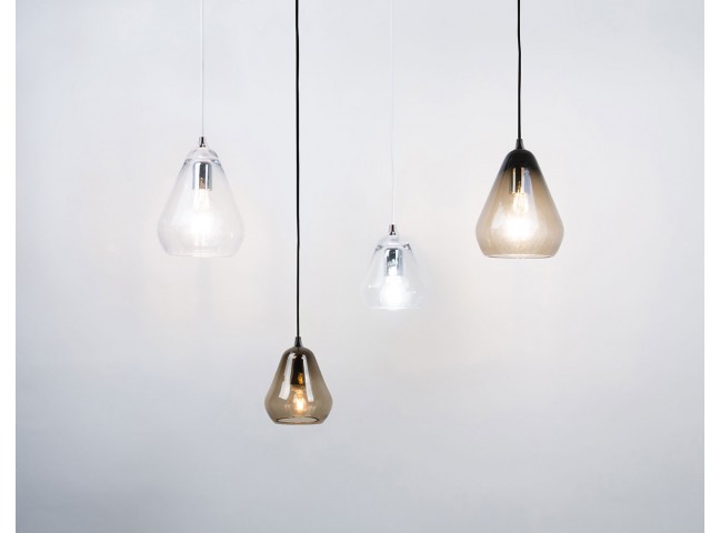 Perfect for modern kitchen countertops and other areas in need of direct, task illumination, Core is available in two sizes and two glass options: Clear and Smoke. Clear glass model features a white braided cord, Smoke glass model features a black braided cord. Recommended for use with a dimmable bulb.