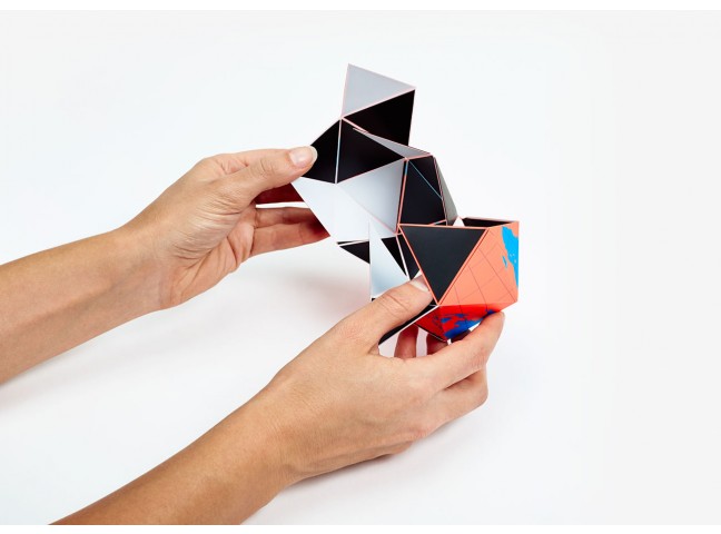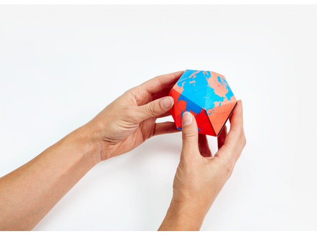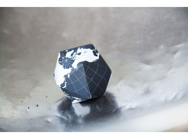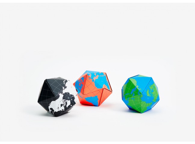 First conceived in 1946 by Buckminster Fuller, Dymaxion is a magnetic folding globe, a representation of Earth that easily transitions from flat to three dimensional. Fold it to form a geometric globe or unfold to reveal our flattened planet.