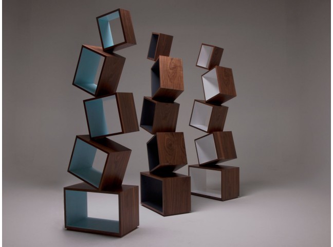 With its cantilevered modules stacked upon each other at a single angled point, Equilibrium five-tier bookcase by Malagana Design is a unique furniture piece that immediately catches attention by creating a sense of amusement and surprise.