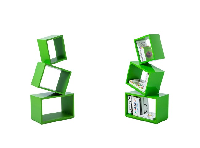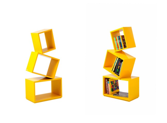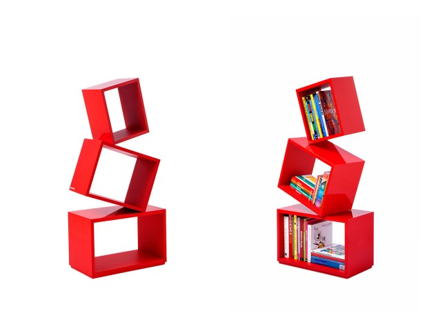 With its cantilevered modules stacked upon each other at a single angled point, Equity three-tier bookcase by Malagana Design is a unique furniture piece that immediately catches attention by creating a sense of amusement and surprise.