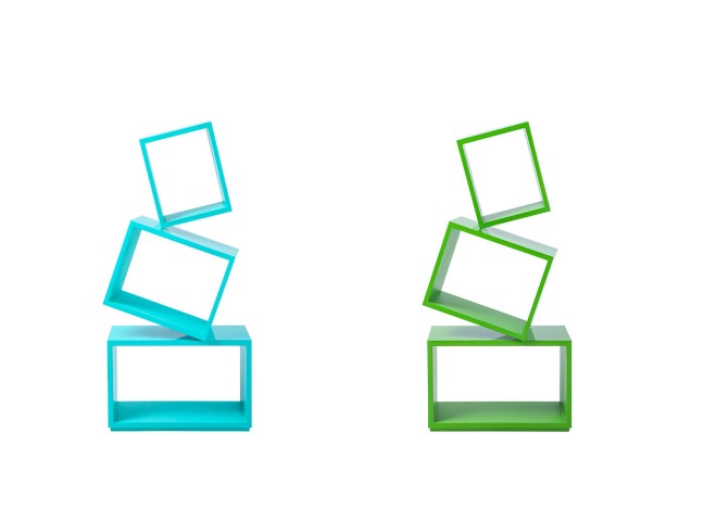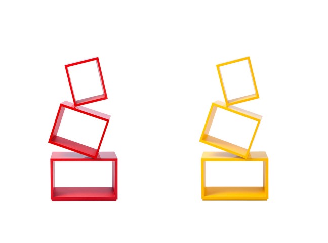 While its compartments seem to float in the air, Equilibrium can hold over 130 lbs of weight and its different mdf modules keep books and magazines organized in a natural tilted position - so no need for bookends. Bold, bright and playful, the new three module bookcase is great for kids, or for the younger in spirit.