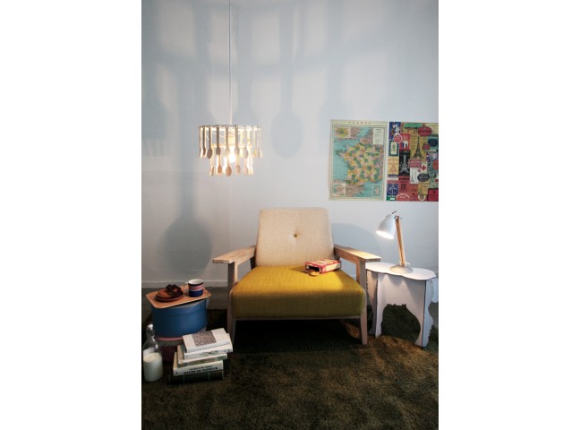 Gita is a pendant light for the kitchen, with wooden dining cutlery as the shade.