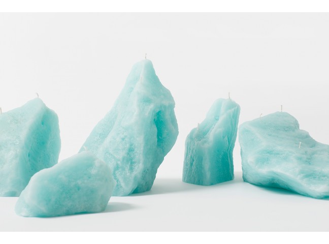 The collection is made of a series of candles crafted to look like glaciers, that, when lit, melt and disappear just like the precious ice forms.