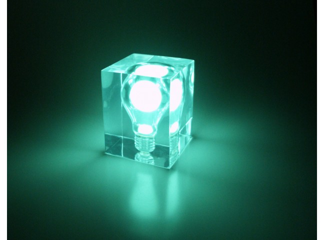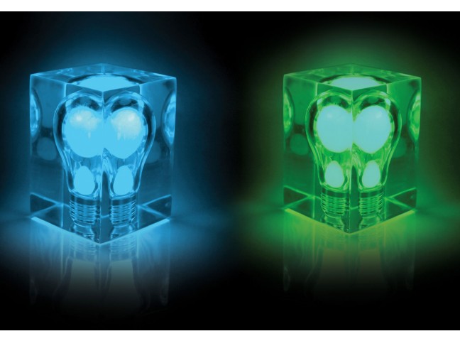 This glow in the dark nightlight is as simple as it gets: a (real) light bulb set in a clear solid acrylic brick, that gets its energy from sunlight.