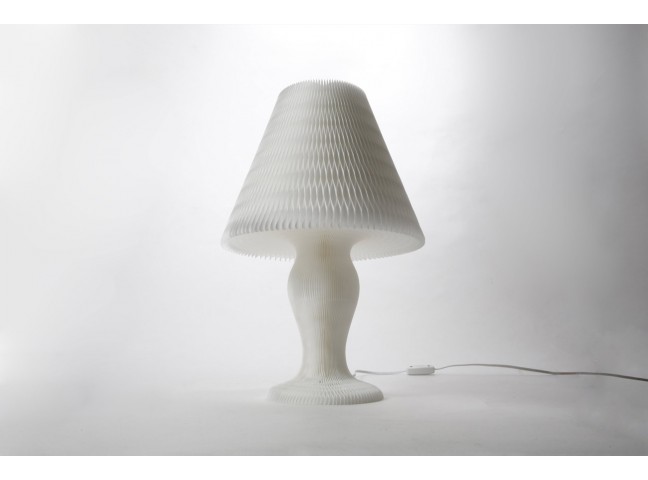 Made of Denguri paper, a local product of the Shikoku region of Japan, and held together by clips (provided), this delicate design opens like a book into a honeycomb pattern that surrounds the light source. Simple and delicate, yet stable and above all, gorgeous.