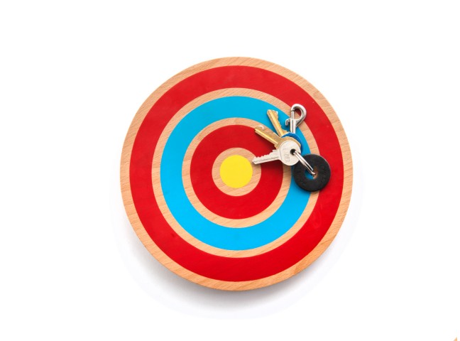 Reminiscent of Jasper Johns' mid-century paintings, Key Target is both a fun keyholder, and an iconic pop-art statement. With several strong, unseen magnets inside, you simply toss your keys toward the beechwood target, and they stay there. A great way to turn a mundane daily routine into some fun. Not to mention never having to look for those keys again.