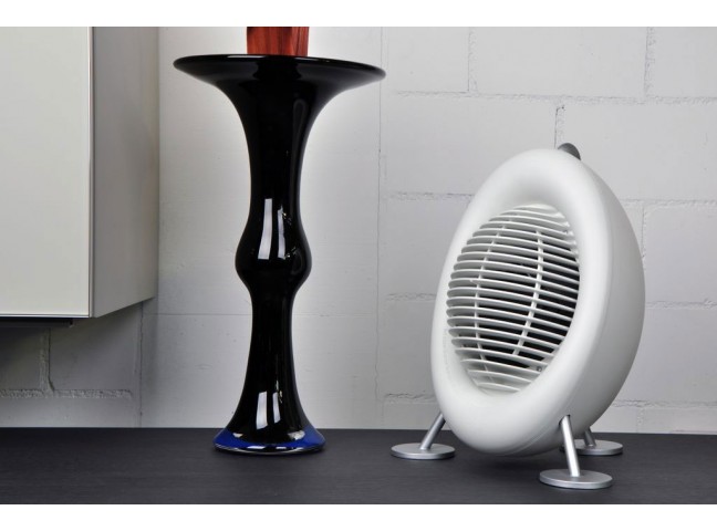 Quiet and elegant, this space heater sits solidly on 3 metal weighted legs. Definitely adds a splash of color and flare to any contemporary home or office. Especially helpful during seasonal transitions when your main heating system is not running.