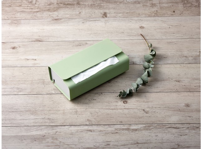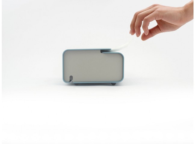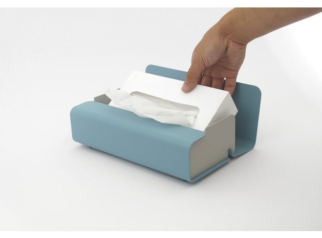 Unlike traditional tissue box covers, Paol dispenses tissues sideways, reducing exposure to dust and pollen. It features a hinge structure that let's you change tissue boxes easily, and a hole in the back that allows it to be hung on the wall.