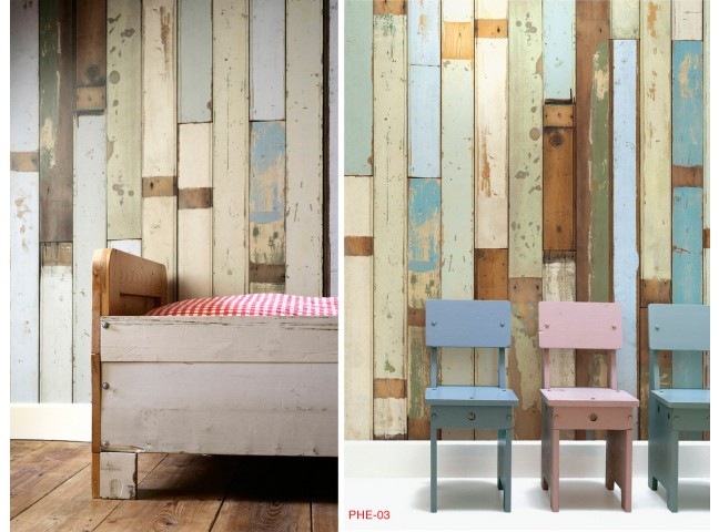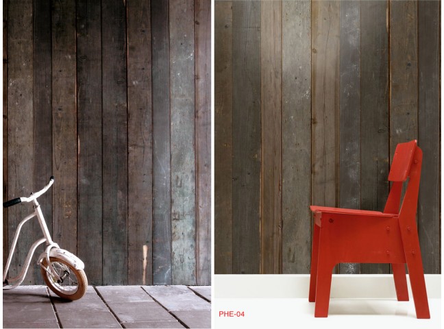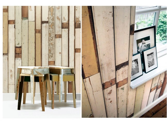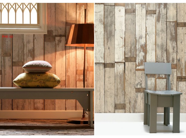 Now, with his Scrapwood Wallpaper he mimics the salvaged weathered wood for which he has become famous.