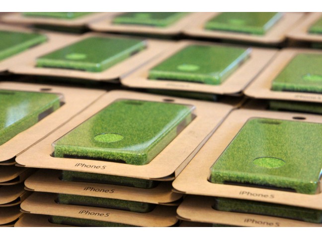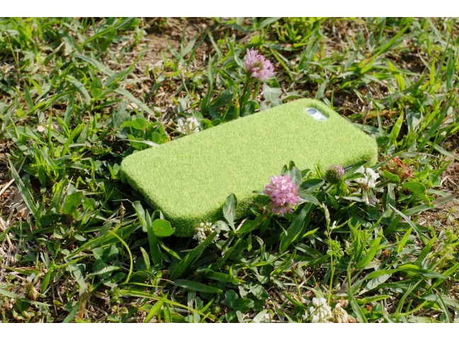 The case is made using electrostatic flocking, where five differently-colored fiber particles are dropped from above, resulting in a real grass texture that is also superbly relaxing on the eye.