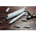 Made from aluminum (bits made of mille carbon steel), and available in silver, champagne, or gunmetal. It measures 5.9" long and 0.68" in diameter – so it's bigger than your average pen, but still pocketable.