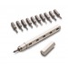 There are 16 bits available (18 in full edition) in various sizes any six of which you can install onto the barrel at any time, and come in slotted, Phillips, hexagon and star shapes.There's a ring in place to stop the bit popping out the back again when pressure is added. The side of the barrel includes a window, which let's you figure out where the required bit is, and there's also a magnet-secured lid to prevent stabbing yourself.
