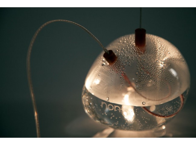 The WET Lamp is an elegant and playful series of glass lamps with an alluring water-submerged light bulb at its center.