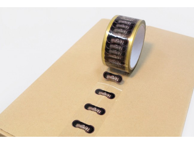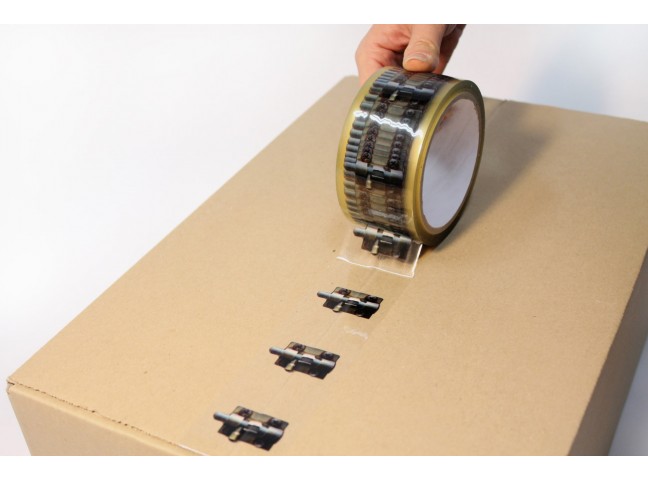 Tape printed with hinges, leather straps, tower bolts or o-rings.